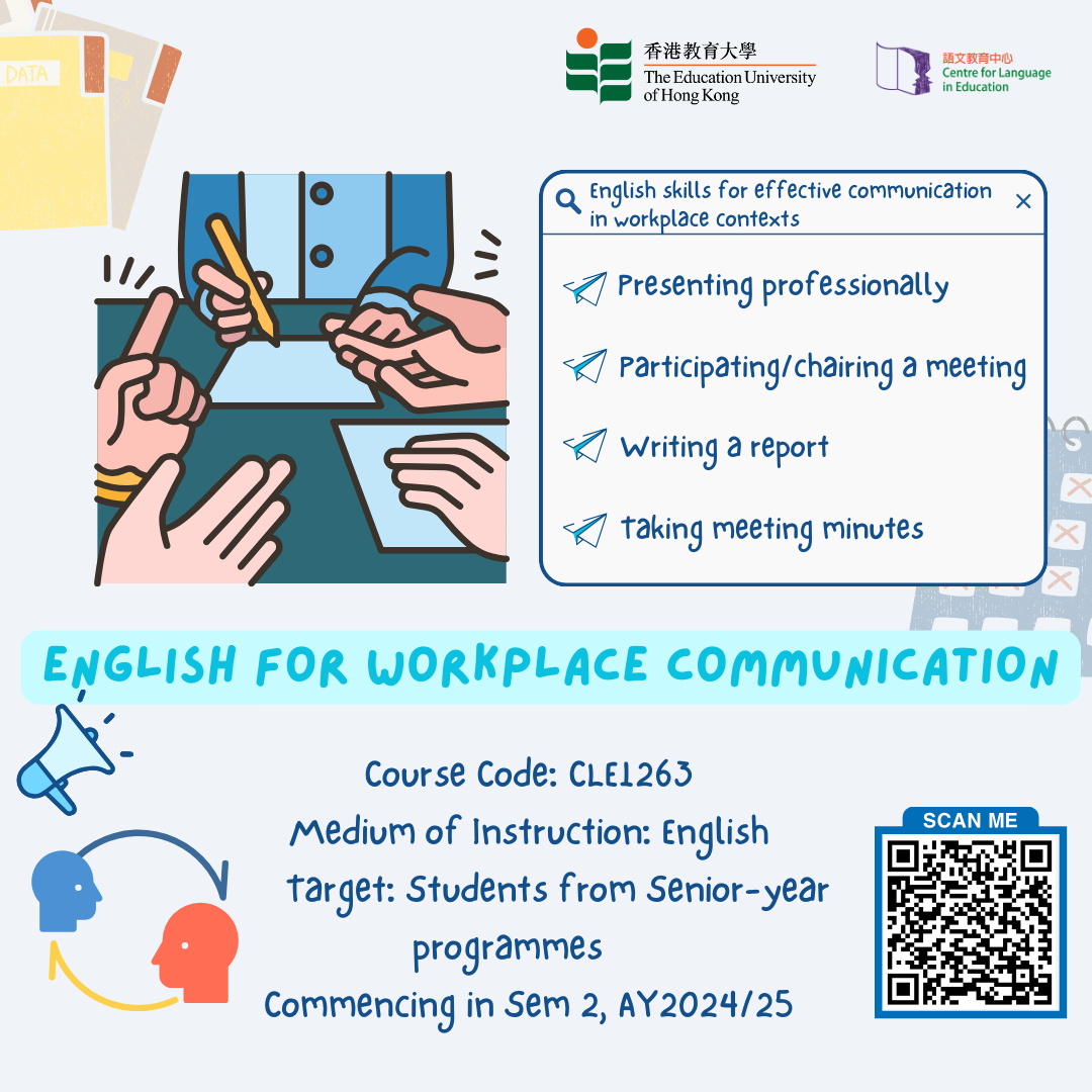 Want to start equipping yourself with essential English skills for effective communication in workplace contexts👨🏻💼👩🏻💼? The Centre for Language in Education is going to offer the course “English for Workplace Communication”. If you want to be well-prepared for entering the job market before graduation, don’t miss this opportunity and enroll in the course!