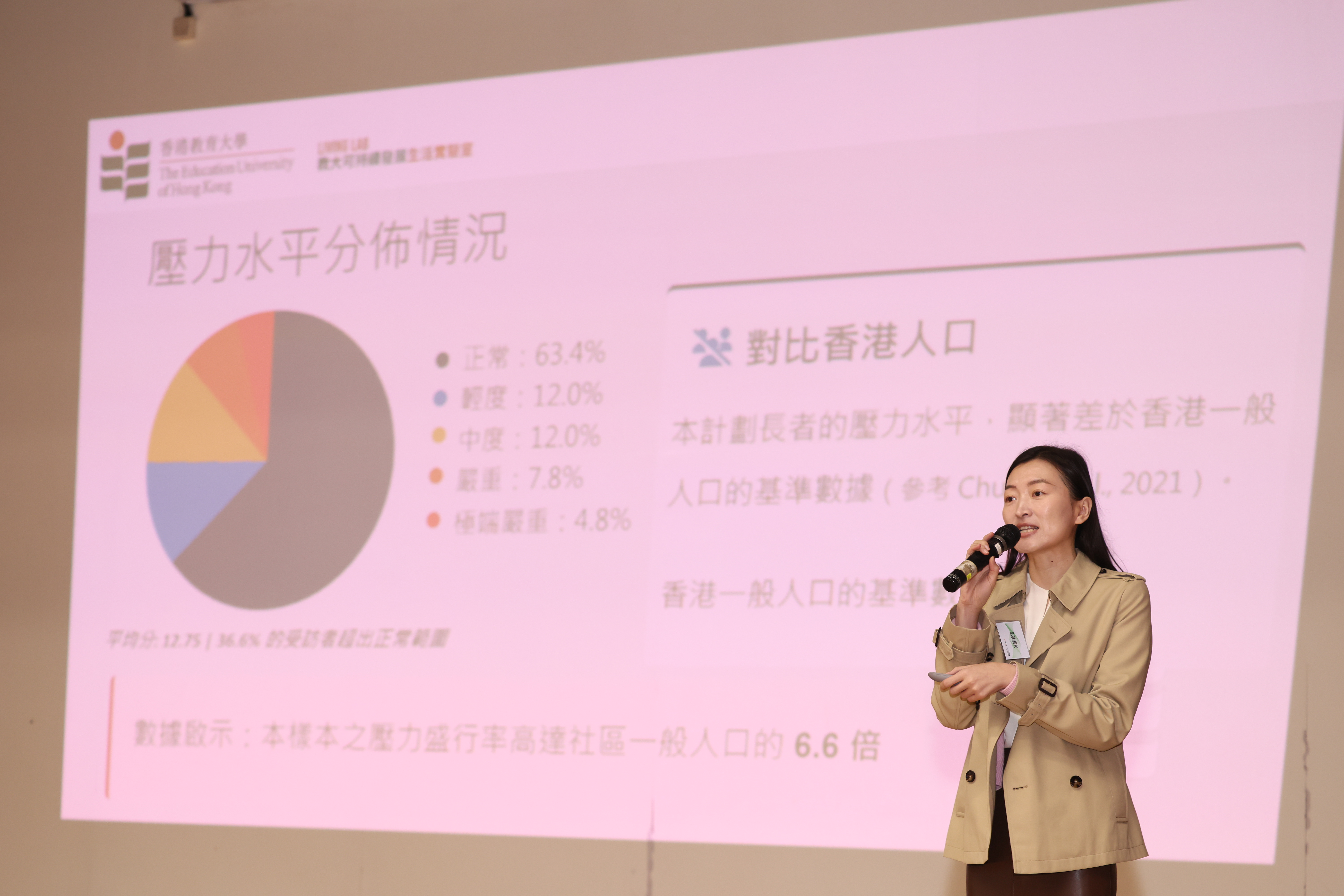 Regarding mental health status, among over 500 elderly people, it was preliminarily found that the anxiety and stress indices of the elderly in the district were significantly higher than the Hong Kong benchmark. The team suggests providing more precise psycho-education or counselling services based on the stratified psychological conditions of the elderly in the district.