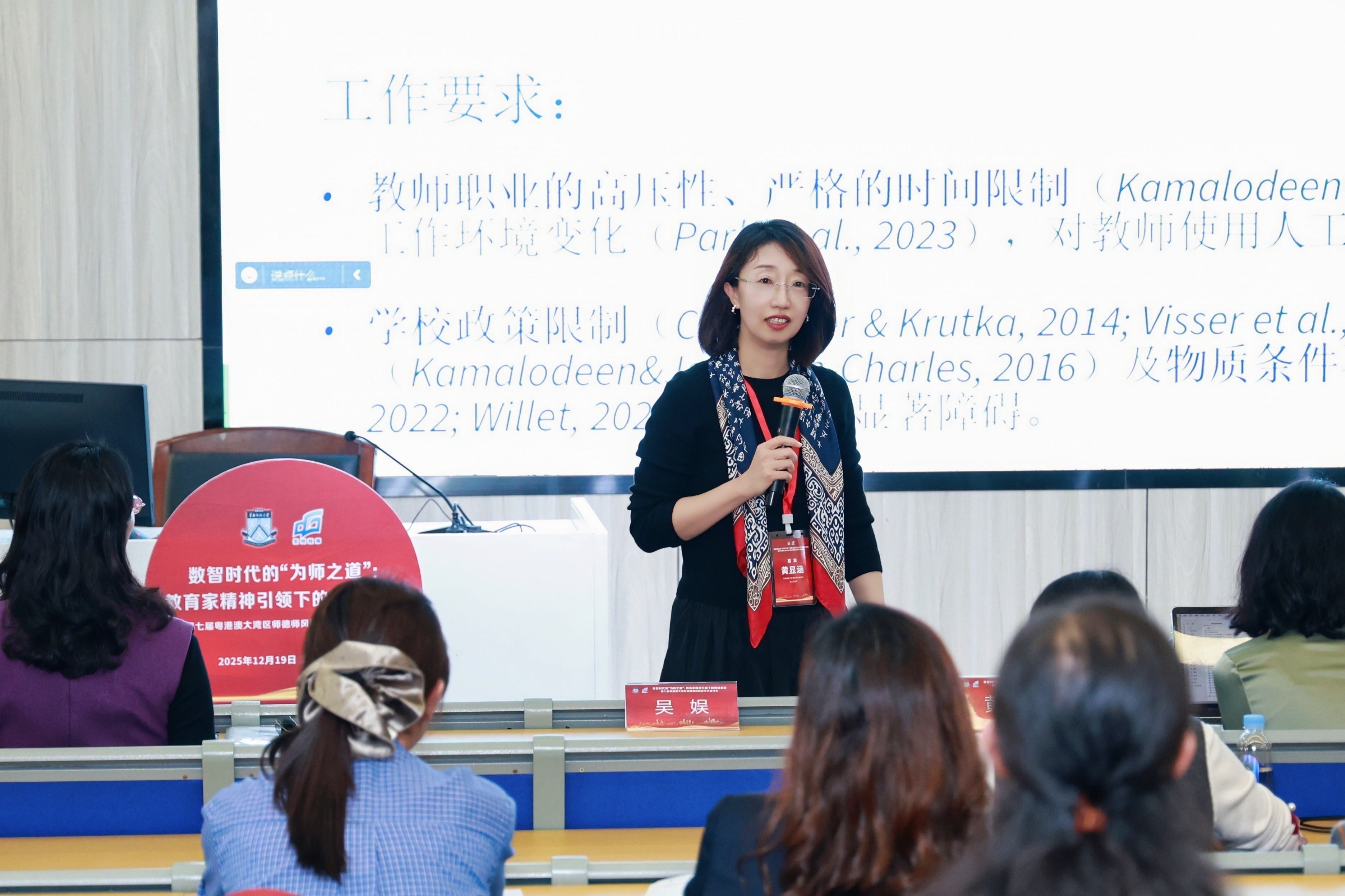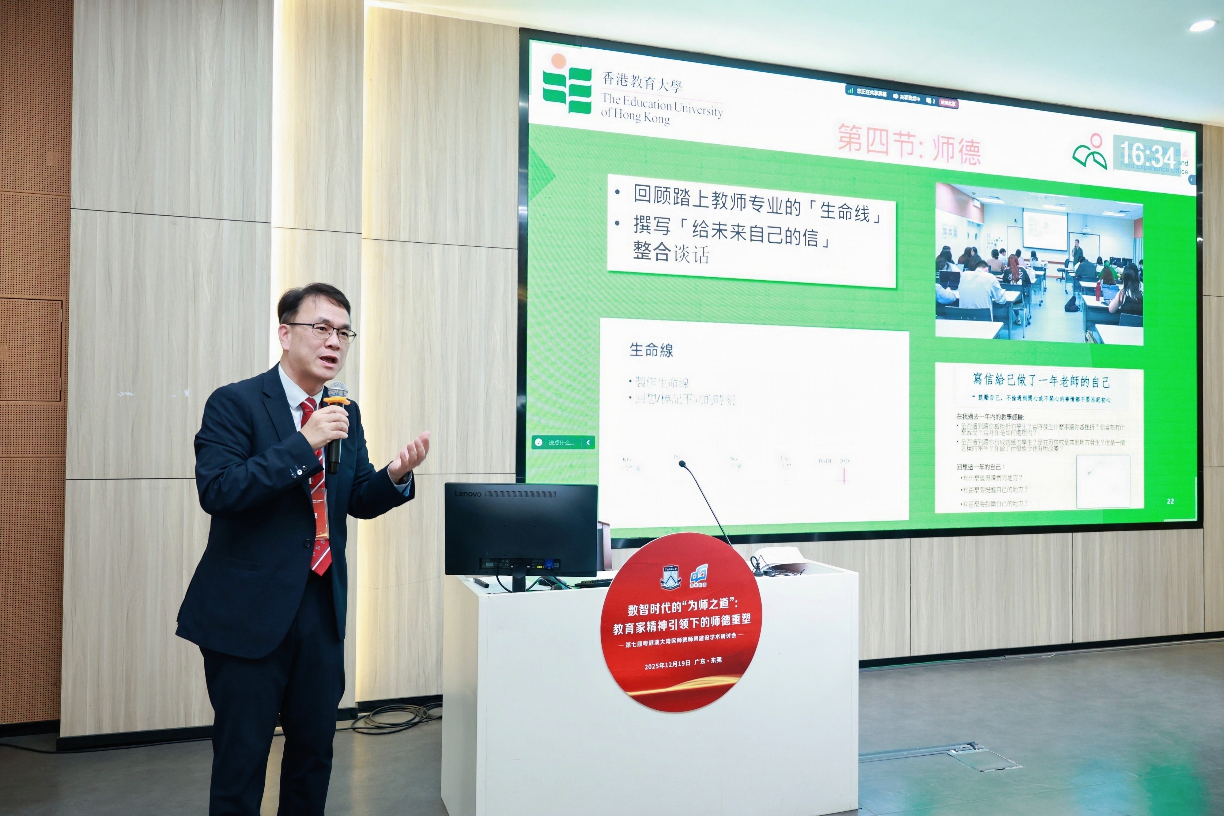 是次研讨会由教育部教师工作司及广东省教育厅指导、教育部师德师风建设基地(华南师范大学)主办,以「数智时代的『为师之道』:教育家精神引领下的师德重塑」为主题,于2025年12月19日在东莞中学松山湖学校举行,吸引近500位来自全国各地的教育工作者参加。
