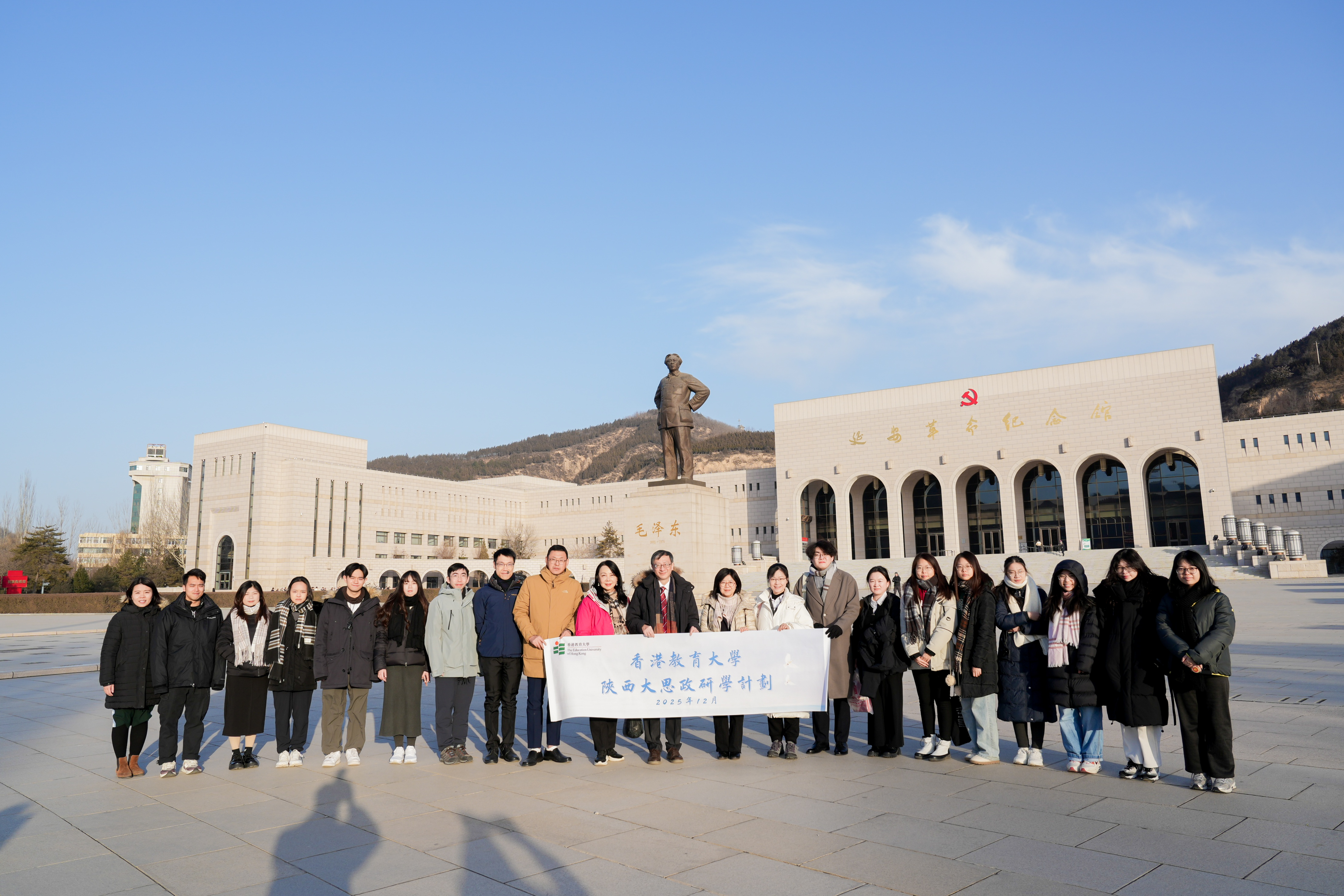 香港教育大学(教大)校长李子建教授率领由20多位师生组成的参访团,于2025年12月21至26日到陕西展开大思政研学计划,为期六天的行程涵盖历史、文化、红色教育、科技及产业等多个领域,通过实地体验,使师生近距离接触中华文明脉络,感受历史底蕴与现代发展的交融,并将所见所闻转化为教学的生动教材,让师德培养与爱国教育变得可触可感。此行的重点之一是深入陕西延安,了解中国革命历史,并与延安大学(延大)签署合作备忘录。西安市委常委、市委统战部部长貟笑冬还会了见教大参访团一行。