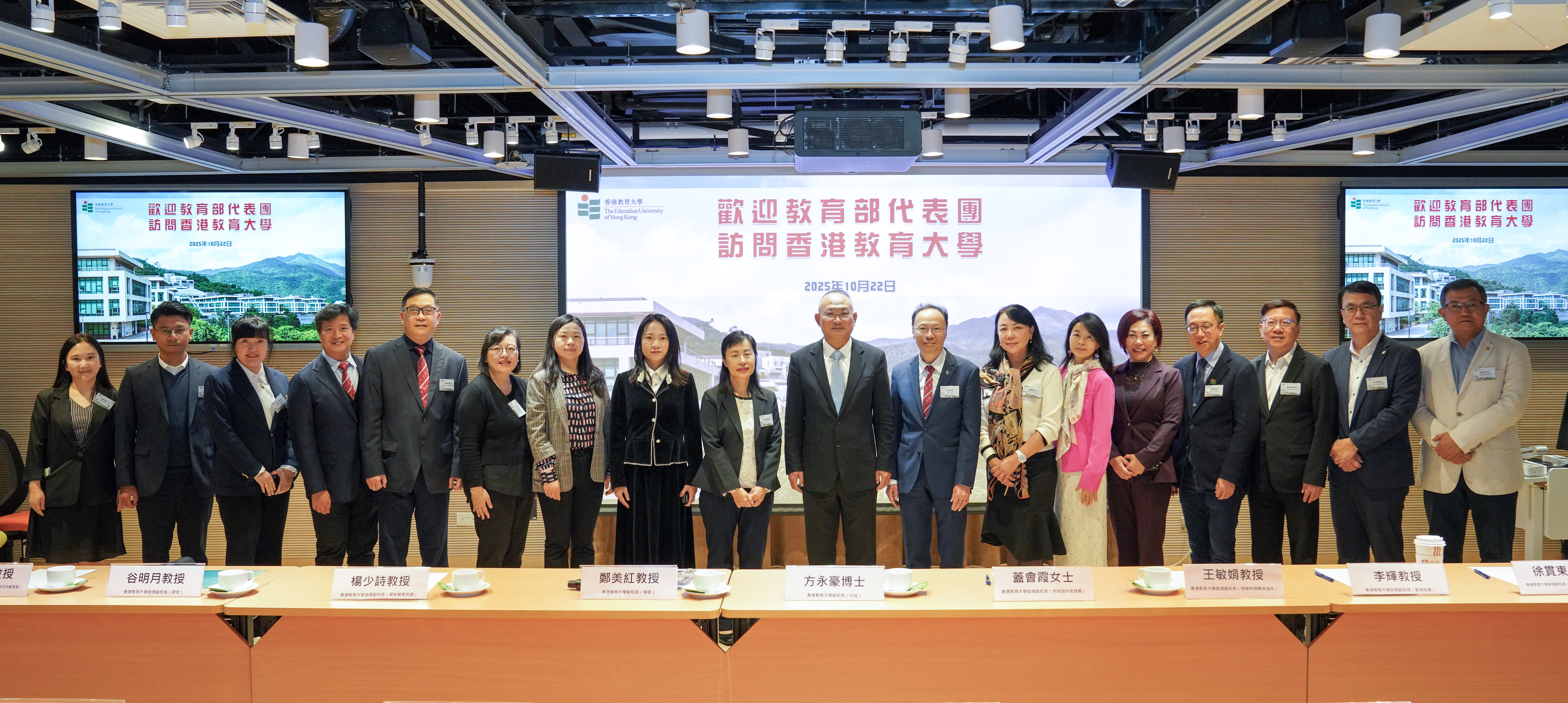 國家教育部代表團一行於2025年10月22日到訪香港教育大學(教大),與教大管理層進行深入交流,分享最新教育政策與未來全球教育發展,促進兩地教育合作與互動。